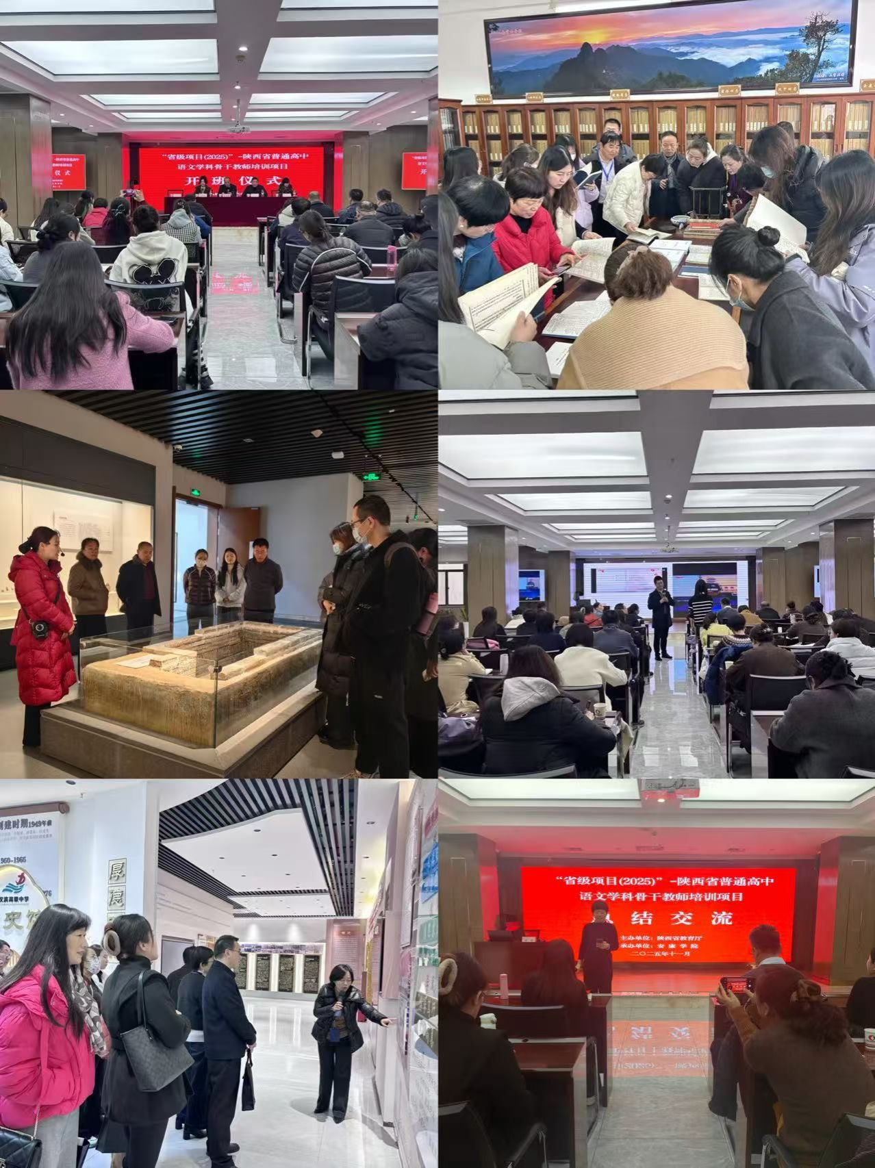 丰富的实践研学活动,让培训内容更接地气。参训教师先后走进安康学院陕南民间文化研究中心与校史馆,在“古金州全景图”、家训文化展墙、地方古籍文献中,沉浸式感受秦巴文化的深厚底蕴;探访安康博物馆,通过三大核心展厅的参观体验,触摸安康的自然禀赋、历史脉络与非遗魅力;深入平利县蒋家坪村茶园,将乡村振兴的实景转化为语文教学的“活教材”;走进汉滨高级中学开展跟岗交流,观摩高三复习示范课,并围绕课堂教学实效展开深度研讨,顺利实现从理论学习到实践应用的有效衔接。